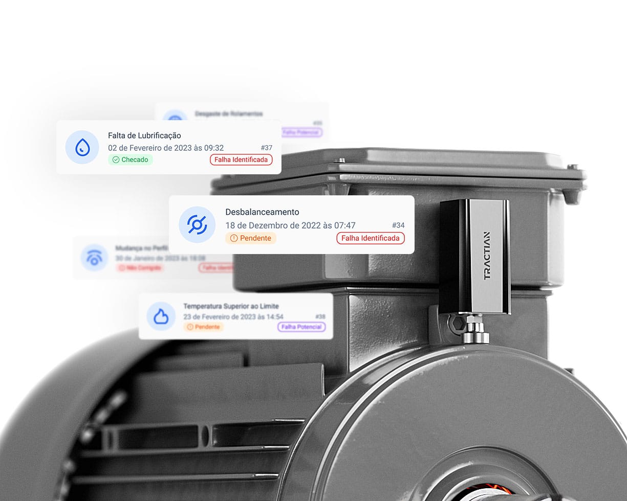 Os sensores da TRACTIAN detectaram a sobrecarga e, imediatamente, a plataforma de monitoramento detectou e prescreveu o que a equipe de manutenção poderia fazer para evitar a quebra, e a intervenção foi bem sucedida.