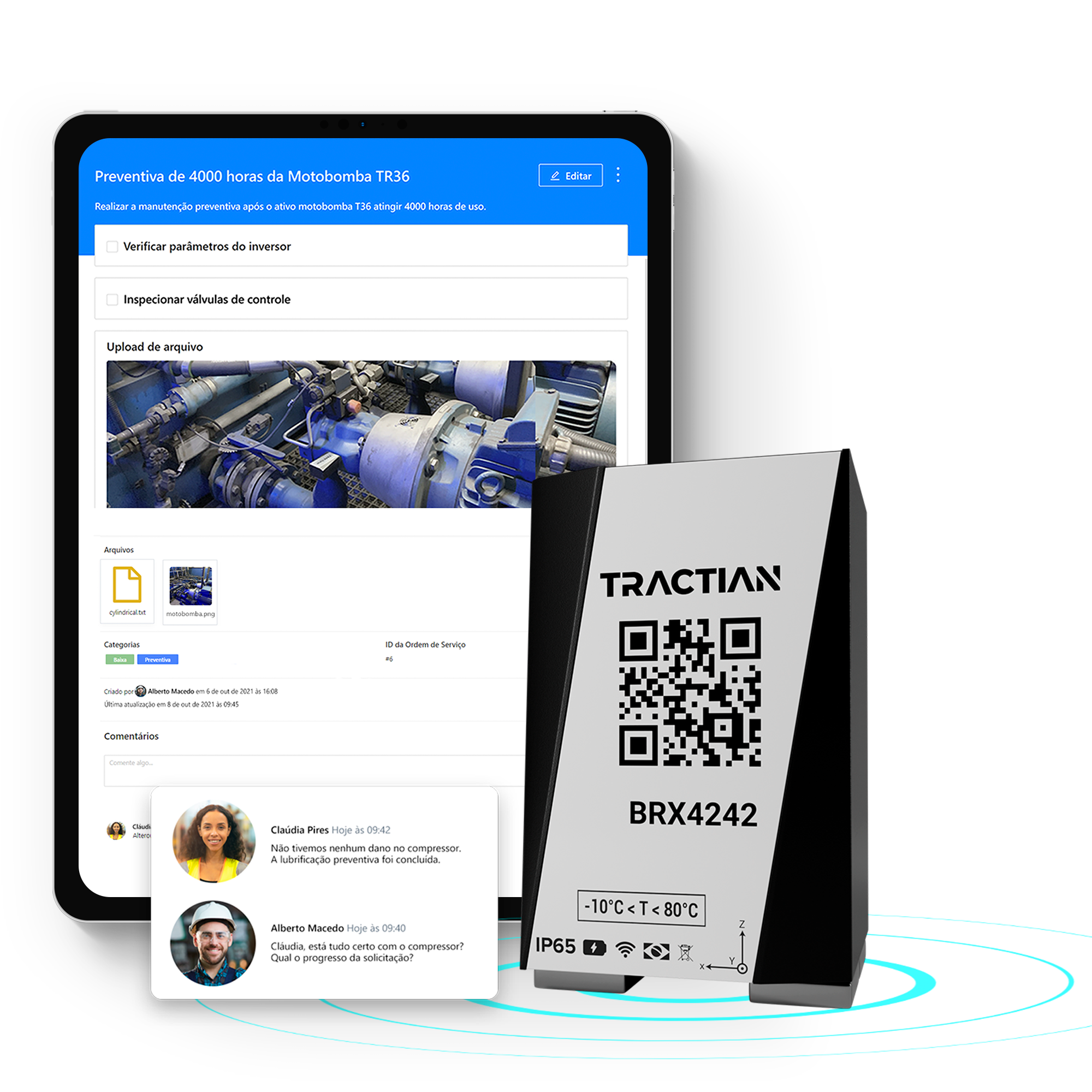 Uma opção de ferramenta de manutenção preditiva é a plataforma da TRACTIAN, que, aliada ao monitoramento online, traz informações sobre as máquinas e faz a gestão dos ativos. O software CMMS, o TracOS™, é um exemplo de sistema que otimiza rotinas de equipes de manutenção e facilita o acompanhamento dos equipamentos.