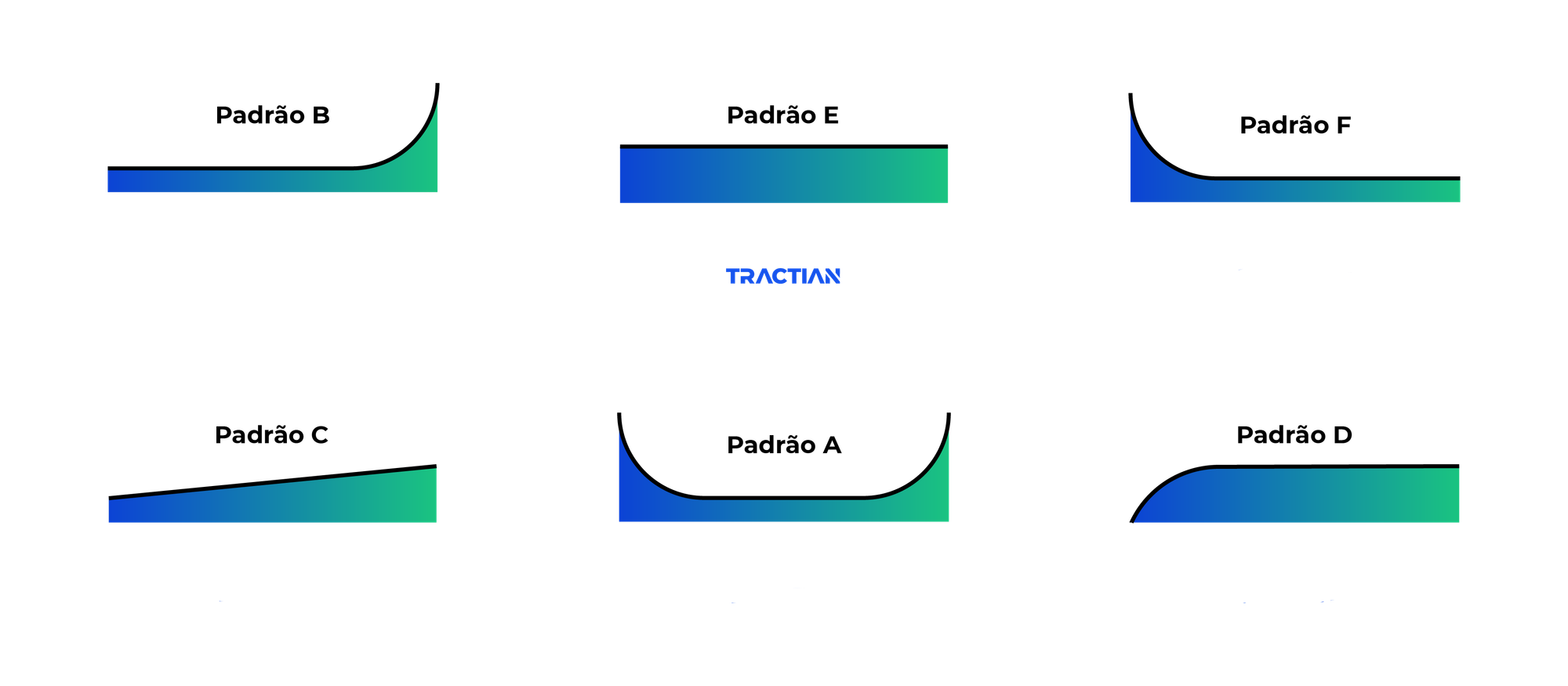 No Padrão E, a probabilidade de falhas é totalmente aleatória, o que gera um gráfico em linha reta. Por fim, o Padrão F, no qual há maior tendência no começo devido a instalação e o restante da vida útil do ativo é aleatório e não aumenta com desgaste.