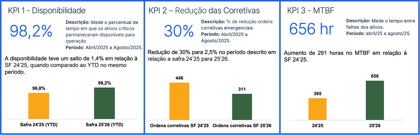 - Redução de 30% de ordens corretivas emergenciais em relação à safra 24'25.