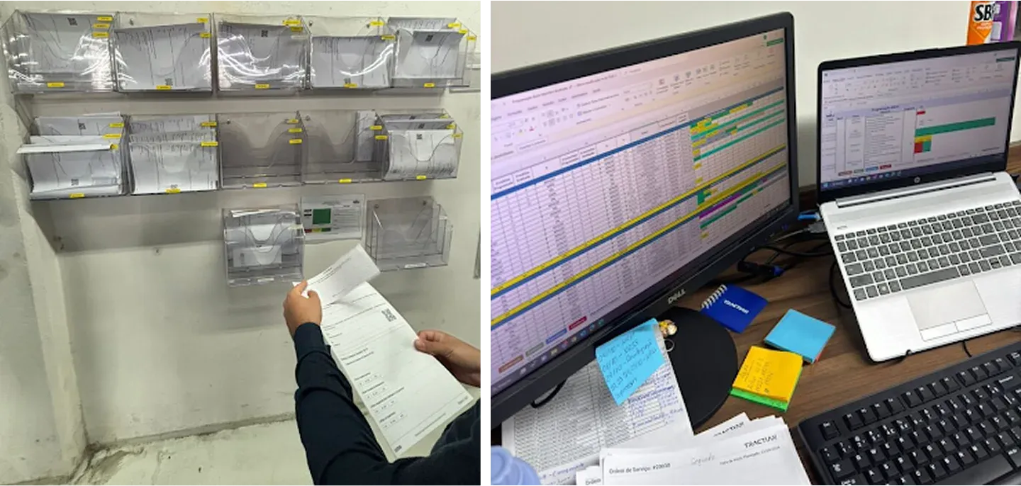 - A equipe técnica de turno adotou o uso de celulares para eliminar o preenchimento manual de ordens de serviço em papel, o que otimizou o lançamento de informações no CMMS da Tractian pela equipe de PCM.