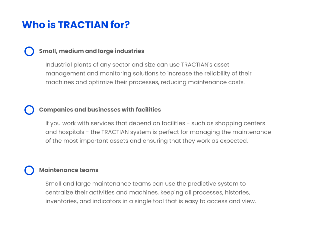 Now that you know the TRACTIAN solutions and what they are useful for, who they serve, and their advantages, you already know that they can and will transform your daily maintenance routine.