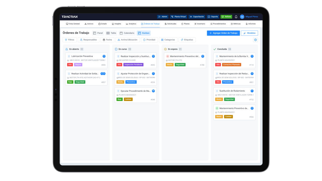 Al incorporar un CMMS en este enfoque, las empresas pueden digitalizar y automatizar cada uno de estos pasos, aumentando la eficiencia y la precisión de las operaciones. Por ejemplo, la plataforma TracOS™, el CMMS de Tractian, permite monitorear la condición de los activos en tiempo real, gestionar órdenes de trabajo y recibir notificaciones instantáneas, asegurando que las respuestas a las preguntas del 5W2H estén siempre actualizadas y basadas en datos concretos.