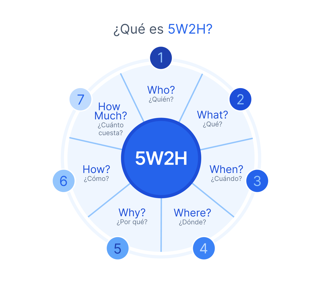 ¿Has oído hablar del método 5W2H? Esta herramienta simple pero poderosa puede transformar la forma en que planeas y gestionas tus proyectos. Originada del inglés, 5W2H es un acrónimo que representa siete preguntas esenciales: Who (Quién), What (Qué), When (Cuándo), Where (Dónde), Why (Por qué), How (Cómo) y How Much (Cuánto cuesta). Estas preguntas ayudan a aclarar objetivos, identificar responsabilidades y definir estrategias claras y eficaces.