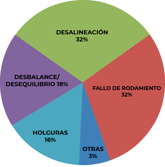 Una encuesta realizada sobre fallos mecánicos hecha por la International Maintenance Conference (IMC- 2012) muestra que la desalineación aparece en primer lugar con un 32%, siendo la principal causa de fallas en las máquinas, seguida por la falla de los rodamientos (31%), el desbalance (18%), los días de descanso (16 %) y otras (3%).