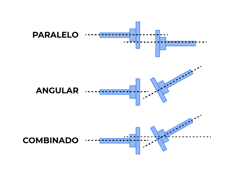 La desalineación puede presentarse de tres formas: paralela, angular o combinada: