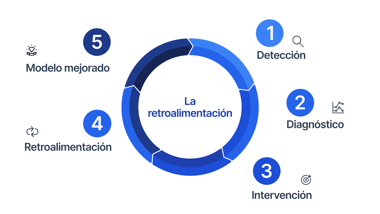 Cuando el técnico confirma o descarta el diagnóstico después de la intervención, esa información regresa al sistema. El ciclo completo, detección, diagnóstico, intervención y retroalimentación, es lo que hace que el sistema mejore con el tiempo.