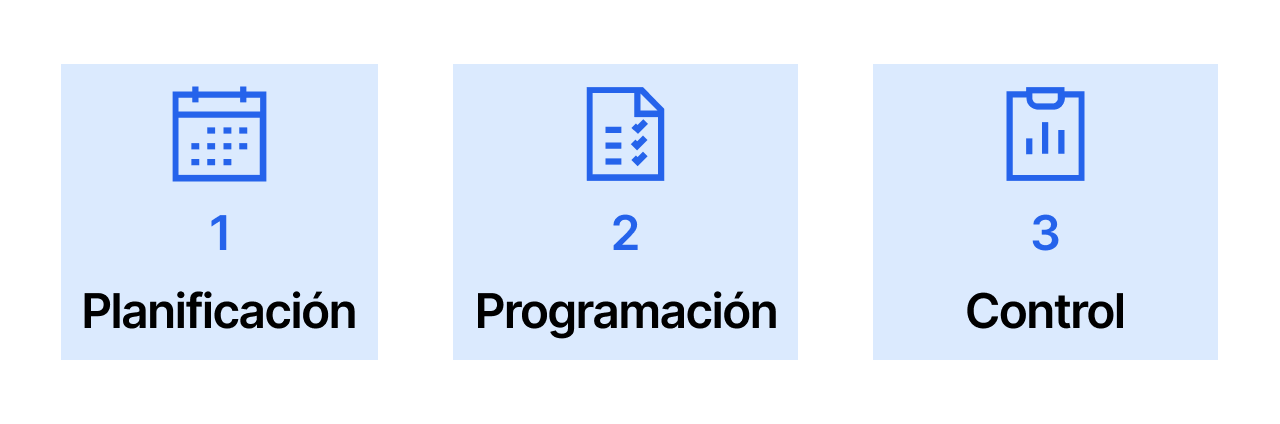 El PCM puede dividirse en tres fases principales: planificación, programación y control.