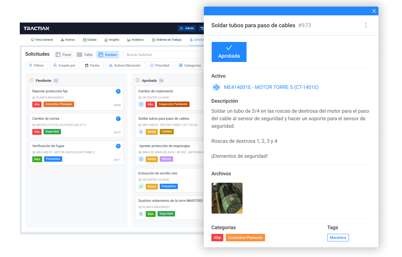 Con información detallada sobre sus activos, sabrá exactamente cuándo debe realizarse el próximo cambio de componentes, priorizar una determinada actividad o simplemente controlar el estado de los equipos.
