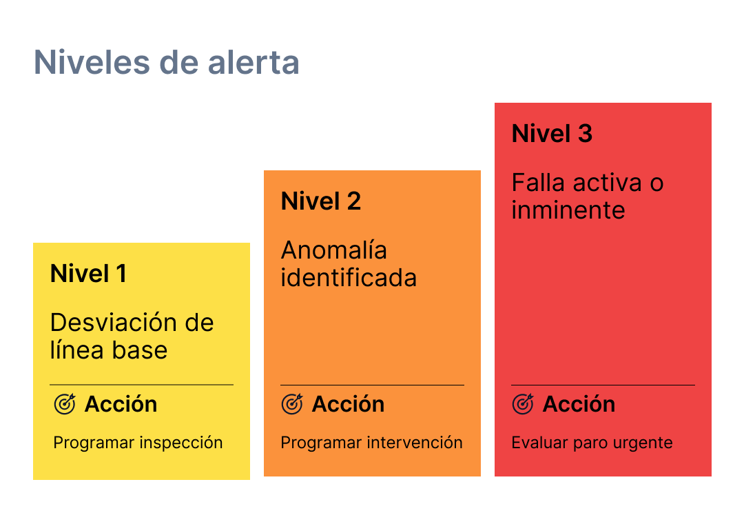 En la mayoría de los casos, llegar a una alerta de nivel 3 en un activo bajo monitoreo continuo indica que la respuesta a las alertas de nivel 1 y 2 anteriores fue tardía o insuficiente. El sistema dio tiempo; la operación no aprovechó la ventana.