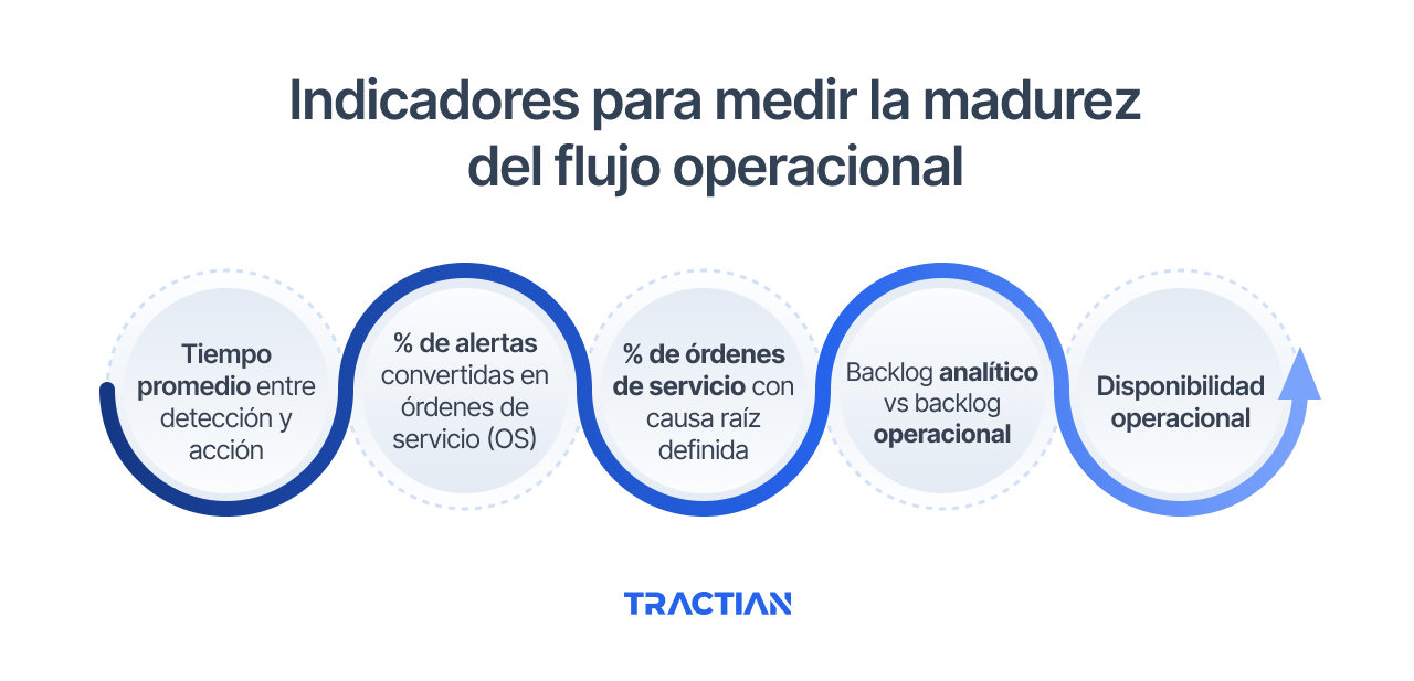 Este indicador muestra cuánto tiempo tarda la operación en transformar una alerta, un síntoma o un desvío en una acción concreta. Los flujos de trabajo maduros presentan tiempos cortos porque los datos son claros, la interpretación es automática y la priorización es objetiva.